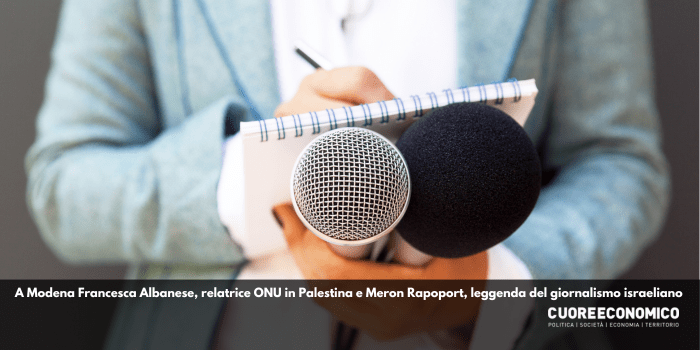 A Modena Francesca Albanese, relatrice ONU in Palestina e Meron Rapoport, leggenda del giornalismo israeliano