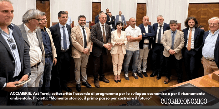 A firmare il documento il ministro delle Imprese e del Made in Italy, Adolfo Urso, la presidente della Regione Umbria Stefania Proietti, l’assessore allo Sviluppo economico di Terni, Sergio Cardinali, l’amministratore delegato di Acciai Speciali Terni S.p.A., Dimitri Menecali. In dettaglio, l’accordo mira a: coordinare gli interventi per il risanamento ambientale e la riqualificazione produttiva del sito della Acciai Speciali Terni; garantire il mantenimento dei livelli occupazionali e, ove possibile, il loro incremento futuro; rimuovere la formazione e riqualificazione professionale dei lavoratori Ast; sostenere la neutralità climatica e la riduzione delle emissioni inquinanti, in linea con gli obiettivi europei e nazionali.