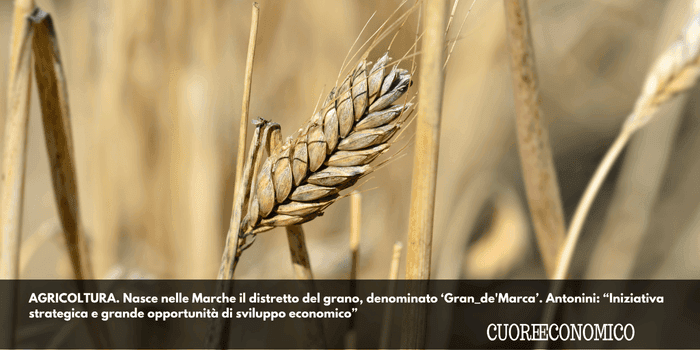 Nasce nelle Marche il distretto del grano, denominato ‘Gran_de'Marca’. A presentarlo l’assessore all’Agricoltura Andrea Maria Antonini nel corso di un incontro durante il quale sono intervenuti il presidente della Regione Marche, Francesco Acquaroli, l’eurodeputato Carlo Ciccioli, il vicesindaco di Ancona Giovanni Zinni, il vicepresidente nazionale della Cia (Conf. Italiana Agricoltori) Matteo Bartolini.
