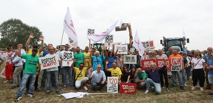 "Abbiamo avuto quasi 30 milioni di euro di danni, con più di seimila ettari di terreni alluvionati -, hanno ricordato i presidenti di CAB Terra, Fabrizio Galavotti, CAB Massari, Gabriele Tonini, e Agrisfera, Rudy Maiani, parlando a nome delle sette cooperative agricole braccianti del territorio. - Il governo ci aveva promesso che sarebbero arrivati ristori al 100 percento, ma a 120 giorni dal taglio dell’alluvione non è ancora arrivato un euro, non ci sono neanche i moduli da compilare.