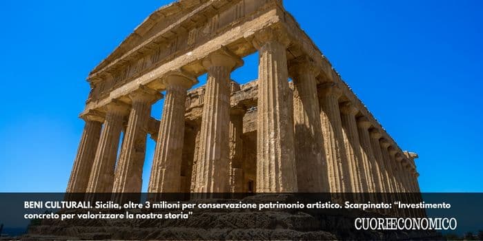 Il Dipartimento dei Beni Culturali della Regione Sicilia ha stanziato oltre 3 milioni di euro provenienti da fondi regionali per interventi di restauro e conservazione del patrimonio artistico dell'isola. Le risorse serviranno a finanziare i progetti presentati da musei, soprintendenze, parchi archeologici e biblioteche.