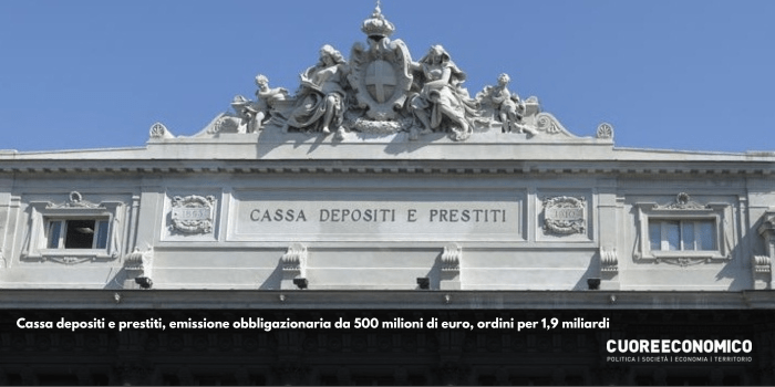 Cassa depositi e prestiti, emissione obbligazionaria da 500 milioni di euro, ordini per 1,9 miliardi