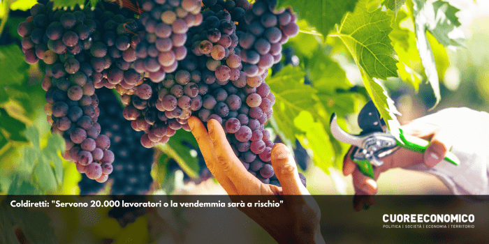 Coldiretti: "Servono 20.000 lavoratori o la vendemmia sarà a rischio"
