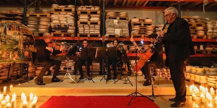 I forni, accesi per non compromettere la produzione, hanno abbassato il volume e lasciato spazio alla musica del maestro Fabio Battistelli, clarinetto solista e del Quartetto D'Archi Gianfranco Contadini, violino, Chiara Antognelli, violino, Irene Mambrini, Viola e Stefano Coco, violoncello.
