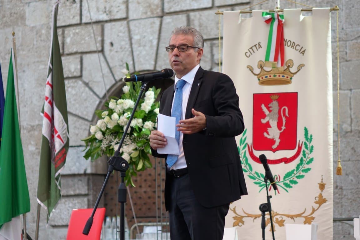 Gli ha fatto eco la presidente della Regione, Donatella Tesei: “Siamo in una piazza ferita – ha detto - ma con la statua di San Benedetto che ci sta quasi indicando la strada. Una strada che è davanti a noi perché la presenza di tanti imprenditori fa ben sperare e rappresenta l’importanza di fare squadra. Da qui deve partire la rinascita della nostra regione. Ringrazio il commissario Legnini con cui abbiamo ricominciato insieme questo percorso, con la consapevolezza che bisogna abbattere la burocrazia. I numeri della messa in sicurezza e del contributo di autonoma sistemazione elencati dal sindaco ci fanno capire che non era questo il modo per gestire il terremoto”.