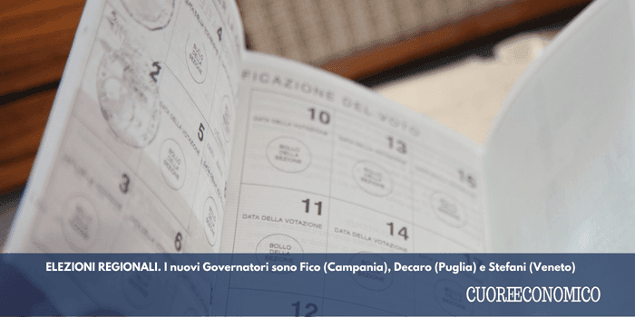 ELEZIONI REGIONALI. I nuovi Governatori sono Fico (Campania), Decaro (Puglia) e Stefani (Veneto)