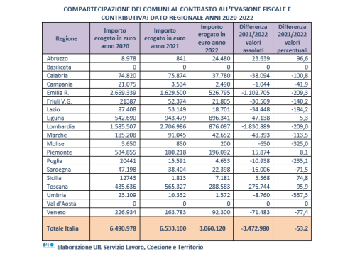 In 13 anni la raccolta è scesa da 21 a soli 2 milioni, con appena 264 comuni che hanno collaborato. Veronese (Uil): "La rimodulazione del Pnrr modifica due target per ridurre la propensione all’evasione, dando l’ennesimo assist agli evasori. Invece una lotta serrata all’evasione fiscale e contributiva, permetterebbe di offrire lavoro ben pagato e duraturo"