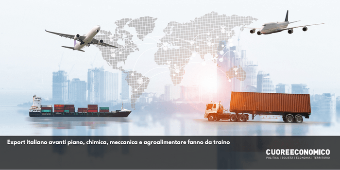 Export italiano avanti piano, chimica, meccanica e agroalimentare fanno da traino