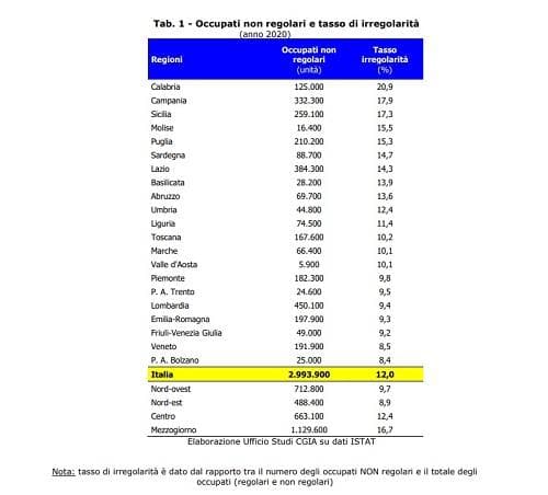 Pertanto, queste ore lavorate irregolarmente non possono essere incluse nelle statistiche ufficiali. Lo sottolinea, in un'analisi, il centro studi della Cgia di Mestre elaborando dati dell'Inps.