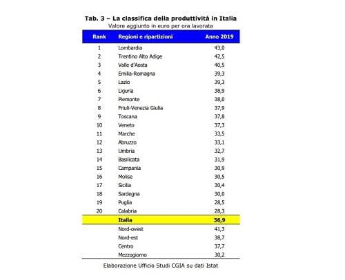 Infatti, a produttività elevate corrispondono salari elevati e viceversa. Dalla lettura di questo dato emergono delle differenze territoriali molto marcate.