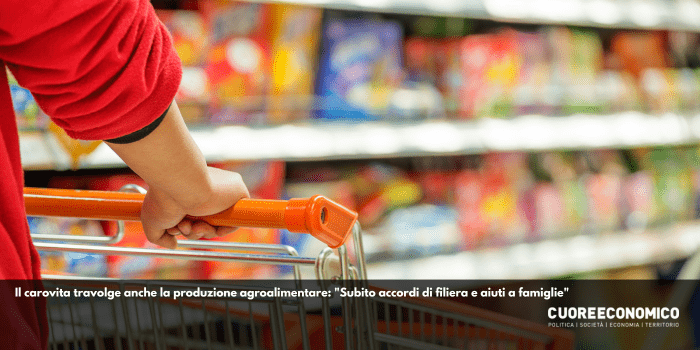 Il carovita travolge anche la produzione agroalimentare: "Subito accordi di filiera e aiuti a famiglie"