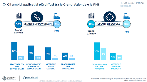 Ecco quindi che la poca conoscenza e attenzione verso la smart supply chain (come per esempio: tracciabilità dei beni, gestione degli asset logistici) e la smart life cycle (vale a dire: ottimizzazione sviluppo prodotto, gestione fine vita dei prodotti) rappresentano per le piccole aziende un freno, prevalentemente di natura culturale, che influenza in modo rilevante la loro competitività.