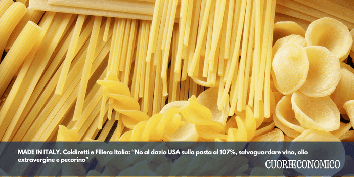 MADE IN ITALY. Coldiretti e Filiera Italia: “No al dazio USA sulla pasta al 107%, salvaguardare vino, olio extravergine e pecorino”