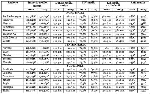 Meno cambiamenti sulle durate rispetto al resto d’Italia, dove c’è sì un allungamento, ma in misura più contenuta (mediamente +1,3 euro); scendono gli LTV soprattutto in Campania e in Basilicata (rispettivamente -4,5 e -4,2).