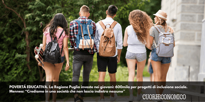 POVERTÁ EDUCATIVA. La Regione Puglia investe nei giovani: 600mila per progetti di inclusione sociale. Mennea: “Crediamo in una società che non lascia indietro nessuno”