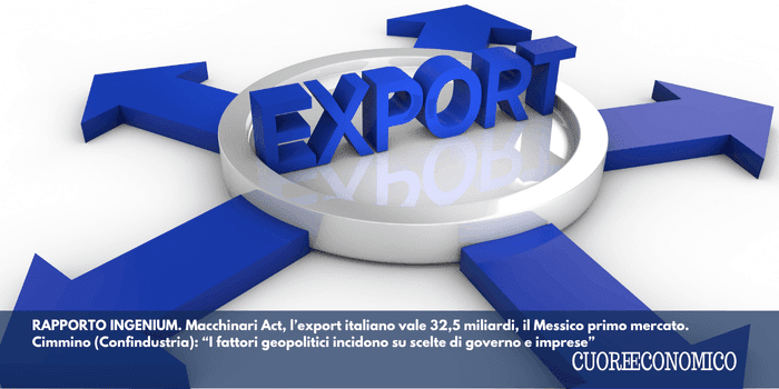 RAPPORTO INGENIUM. Macchinari Act, l’export italiano vale 32,5 miliardi, il Messico primo mercato. Cimmino (Confindustria): “I fattori geopolitici incidono su scelte di governo e imprese”