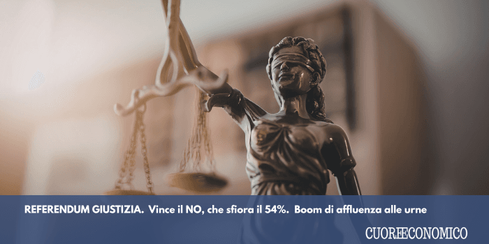 Gli italiani hanno detto NO alla riforma della giustizia. Nel tardo pomeriggio di lunedì 23, con le ultime sezioni ancora da scrutinare, il NO era a 53,7%, mentre il SÌ al 46,22%.