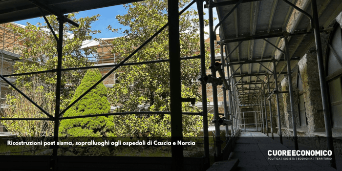 Per una verifica dello stato di avanzamento dei lavori di ricostruzione post sisma, l’Assessorato regionale alle Opere pubbliche, Infrastrutture e Trasporti, ha svolto un sopralluogo nei cantieri dell’ospedale “Santa Rita” di Cascia e dell’ospedale di Norcia, concludendo poi la visita in alcuni cantieri dell’Azienda pubblica di servizi alla persona “Fusconi Lombrici Renzi” di Norcia. Tematica che verrà affrontata anche dai protagonisti della quinta edizione del NORCIA 2024 - GLOCAL ECONOMIC FORUM di ESG89, in programma dal 2 al 4 maggio