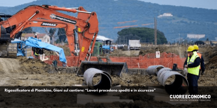 Il 26 gennaio, il presidente della Toscana Eugenio Giani fa fatto visita al cantiere Snam di Piombino, dove si lavora per l’arrivo della nave rigassificatrice Golar Tundra, che rimarrà nel porto della città per tre anni, e il suo collegamento, con una tubatura di otto chilometri e ottocento metri, alla dorsale tirrenica del gasdotto che attraversa la penisola. Il quaranta per cento dei lavori è già concluso e per maggio si ipotizza la conclusione ed entrata in funzione dell’impianto.