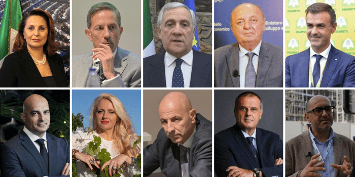 (da in alto a Sx Luisa Regimenti, Giovanni Giorgetti, Antonio Tajani, Gilberto Pichetto Fratin, Ettore Prandini, Marco Hannappel, Dominga Cotarella, Ernesto Lanzillo, Alfonso Di Bona e Andrea Cuccello)