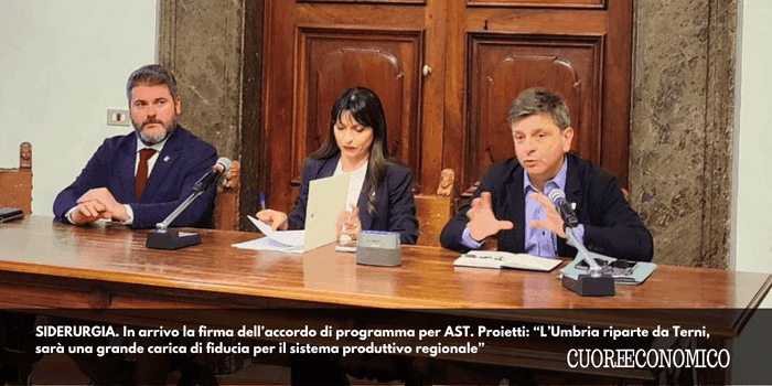 “L’Umbria riparte da Terni, sarà una grande carica di fiducia per tutto il sistema produttivo regionale”. Ad affermarlo la Presidente della Regione Umbria Stefania Proietti nel corso della conferenza stampa convocata per dare l’annuncio della firma, che avverrà il prossimo 11 giugno presso il Ministero delle Imprese e del Made in Italy, dell’accordo di programma con la Acciai Speciali Terni. Presenti alla conferenza anche l’assessore allo Sviluppo economico Francesco De Rebotti e dell’Ambiente e all’Energia Thomas De Luca.