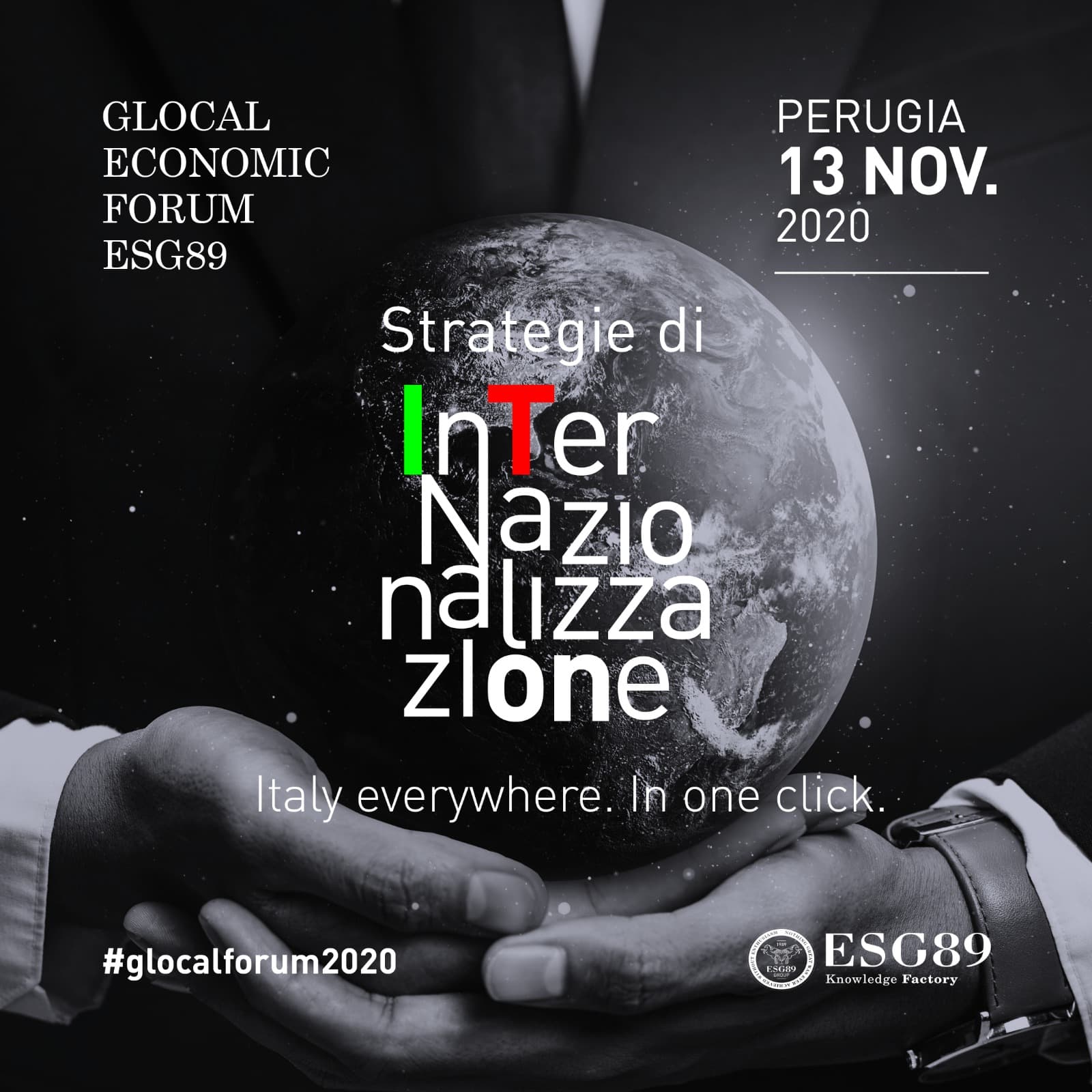 ‘Come ogni anno – commenta Giovanni Giorgetti Presidente di ESG89 – la scelta dei relatori ha comportato un impegno straordinario di tutta la nostra squadra a cui va il mio più sentito ringraziamento. Il Panel è quasi completato e siamo convinti di aver costruito qualcosa di veramente originale. Il capoluogo umbro, ospiterà VIRTUALMENTE la terza edizione del GLOCAL ECONOMIC FORUM ESG89, che ha ricevuto il Patrocinio della Regione dell’Umbria e del Comune di Perugia, sarà per un giorno ‘capitale italiana dell’internazionalizzazione’ convinti dell’importanza strategica del tema scelto per sostenere lo sviluppo strutturale della nostra economia e delle aziende che la compongono. Digitale, innovativo, di qualità, globale, dinamico, in rete: così sarà la nuova frontiera della globalizzazione delle nostre imprese e solo con uno grande gioco di ‘squadra’ si potranno conquistare nuovi e ambiziosi traguardi’.