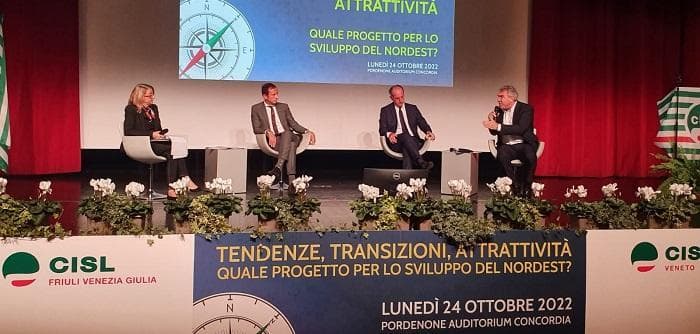 Sono questi gli interrogativi di partenza dell’incontro “Tendenze, transizioni, attrattività. Quale progetto per lo sviluppo del Nord Est?”, promosso dalle Cisl del Friuli Venezia Giulia e del Veneto, e che ha visto dialogare tra loro, a Pordenone, il segretario nazionale della Cisl Luigi Sbarra e i governatori Massimiliano Fedriga e Luca Zaia.
