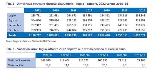 Stando agli arrivi turistici registrati in Umbria tra luglio e ottobre 2022, sembra che il settore abbia ingranato la marcia rispetto al passato: +79.106 rispetto al 2019; +72.418 rispetto al 2018; +200.190 rispetto al 2017 e così per ogni anno.