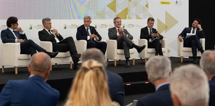 I presidenti di cinque associazioni regionali degli industriali, Silvano Pagliuca (Abruzzo), Sergio Fontana (Puglia), Francesco Somma (Basilicata), Gianluigi Traettino (Campania) e Aldo Ferrara (Calabria), moderati dal giornalista Mediaset Andrea Giambruno, si sono confrontati sul tema "Le sfide per lo sviluppo del Mezzogiorno" e, unanimemente, hanno ritenuto la zona economica speciale unica per le regioni del Sud un'occasione per il sistema imprenditoriale, "purché il periodo di transizione non comporti rallentamenti rispetto al lavoro dei commissari".